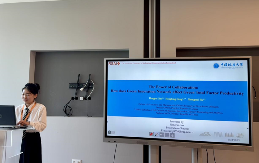 2024年4月8日-11日,国际区域科学协会第十四届世界大会在匈牙利召开,ky开元官网应用经济学博士生焦弘睿参会,并代表所在的邓宏兵教授团队在分会场宣读论文《The Power of Collaboration: How does Green Innovation Network affect Green Total Factor Productivity》。