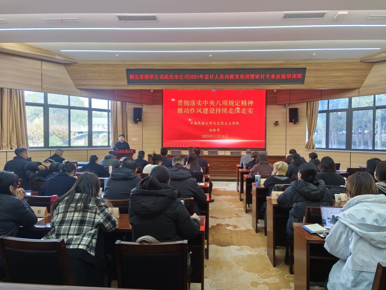 (通讯员:陈永平)2025年11月18日上午,湖北省烟草公司武汉市公司2025年会计人员再教育培训暨审计专业技能培训班开班仪式在ky开元集团官网八角楼报告厅隆重举行。湖北省烟草公司武汉市公司党委委员、副经理、副局长陈劲,财务处长李华华,审计处处长邓斌;ky开元集团官网党委书记薛保山,院长於世为等出席,湖北省烟草公司武汉市公司财务处长李华华主持本次开班仪式。