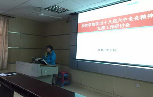(通讯员 海鸣)11月9日下午,ky开元集团官网在MBA楼106室召开了《经管学院学习十八届六中全会精神暨支部工作研讨会》,会议由学院党委书记隋红同志主持,学院党委理论学习中心组成员、学院领导班子、教工党支部的支部书记和支部委员参加了会议。