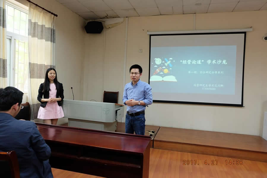 4月27日,ky开元官网研究生“经管论道”学术沙龙开幕式暨第一期在MBA楼207教室隆重举行。学术沙龙作为一种较为轻松的学术研讨方式,通过学术展示和交流,使之成为大家解决学术困惑、汲取学术智慧和增加交流沟通的重要渠道,旨在开阔视野、交流思想、启迪智慧和激励创新。院研会科协在副院长於世为老师的发起指导下,经过一个月紧罗密布的组织策划,第一期活动“经管论道”学术沙龙成功举办。