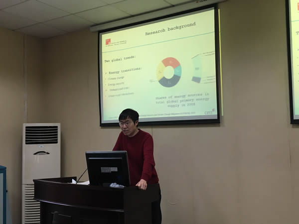 来自德国汉堡大学博士后舒克盛博士在会上作了题为《生物质能源开发决策模型及政策研究》的学术报告,与会的青年老师就该问题以及能源资源开发利用与气候变化等科学问题作了深入探讨。双方就如何进一步合作研究达成了基本意向。