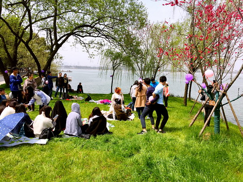 置身于摩拜自行车、小黄车、小蓝车、景区自备租用车等自行车流和徒步人群客流中,师生边行边讨论城市和景区公共基础设施与旅游服务的提供、生产与收费问题,在利用搜索引擎和地图软件导航时,又切实感受到当下中国及武汉东湖风景名胜区在智慧旅游建设上取得的进展,并针砭服务的缺口与不足。