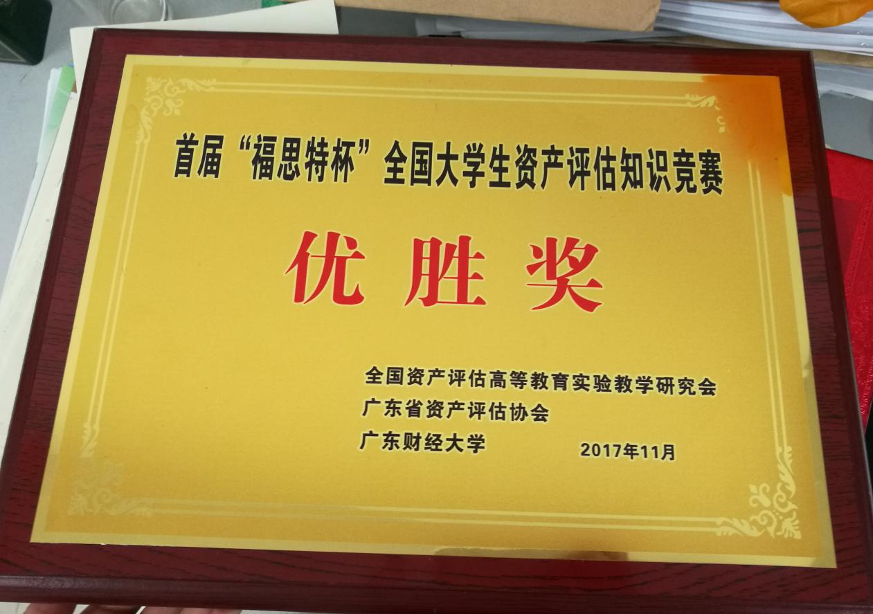 首届“福思特杯”全国大学生资产评估知识竞赛决赛在广东财经大学广州校区举行。竞赛由全国资产评估高等教育实验教学研究会和广东省资产评估协会主办,广东财经大学与广州市福思特科技有限公司承办,共分为初赛、复赛和决赛三个阶段。本次竞赛于9月份开始报名,2017级资产评估专业硕士研究生踊跃报名,最终在15名报名参赛的同学中选拔出曹君茹、陆杨和王浪三名同学组成ky开元集团官网代表队,经过初赛和复赛的激烈角逐,从全国53所高校参赛队伍中脱颖而出,以总成绩第五的成绩参加决赛。经过多轮比拼,最终荣获“优胜奖”。