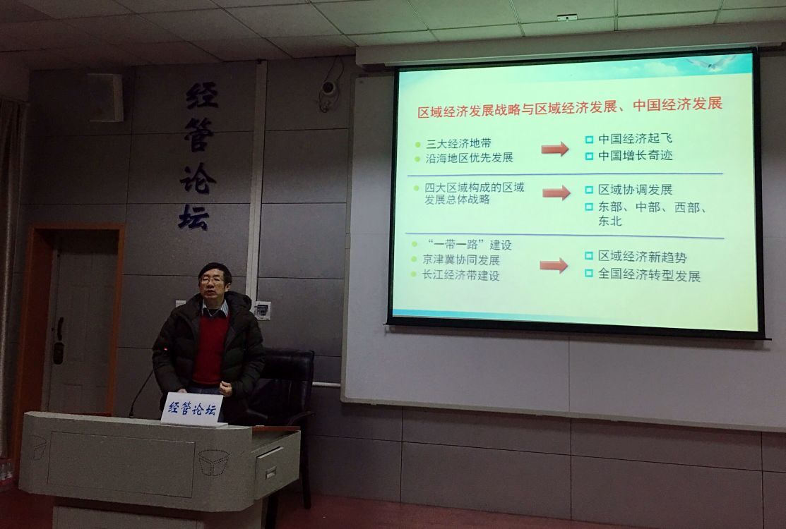 (通讯员:洪水峰)2018年1月4日上午9点30分,暨南大学著名教授、博士生导师覃成林教授在北三楼MBA中心208以“多级网络空间发展格局——中国区域经济新构想”为主题,为ky开元官网师生做了一场精彩的报告。ky开元集团官网部分教师、研究生、本科学生共40余人聆听了报告。报告会由ky开元集团官网副院长杨树旺教授主持。