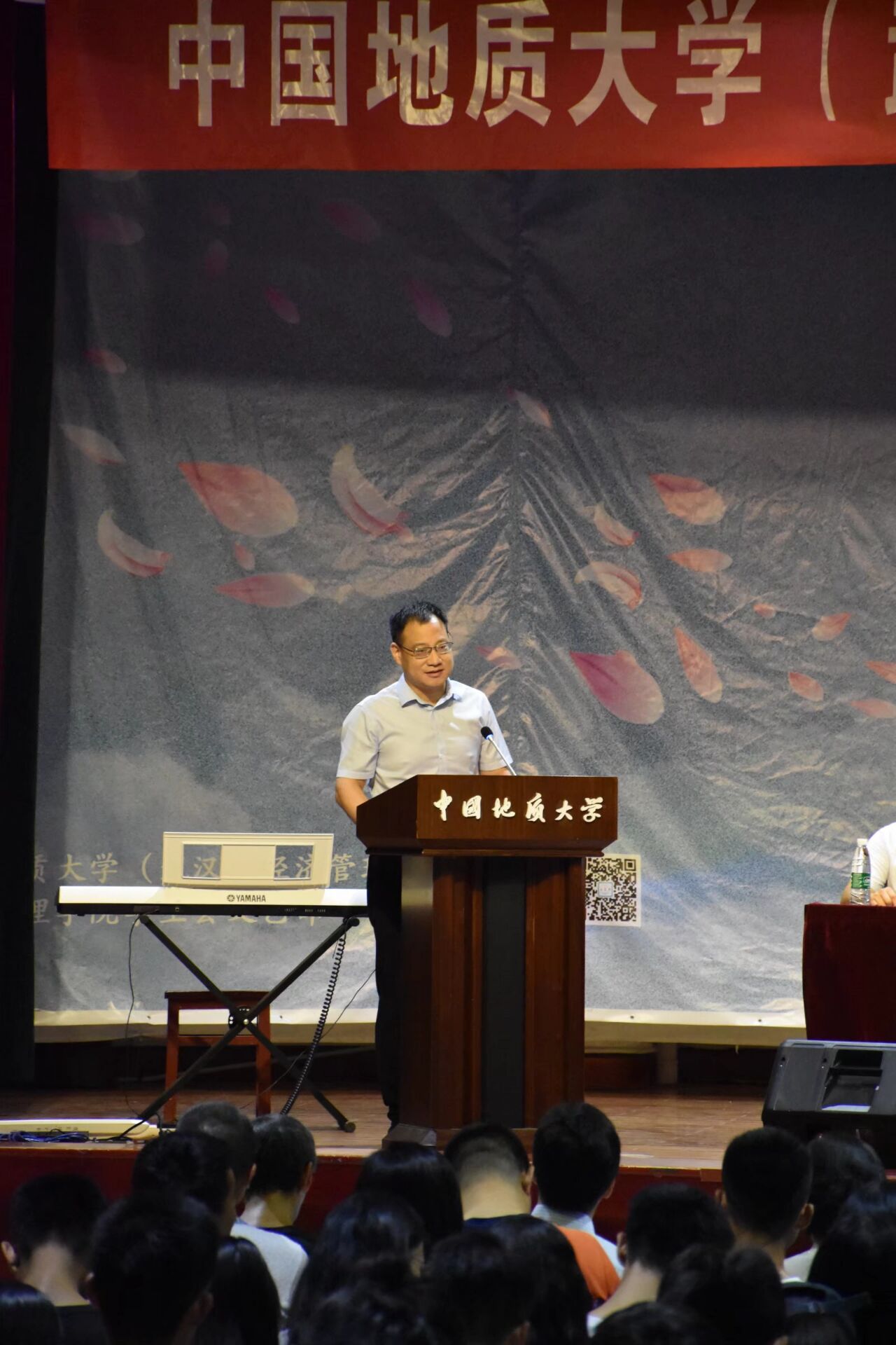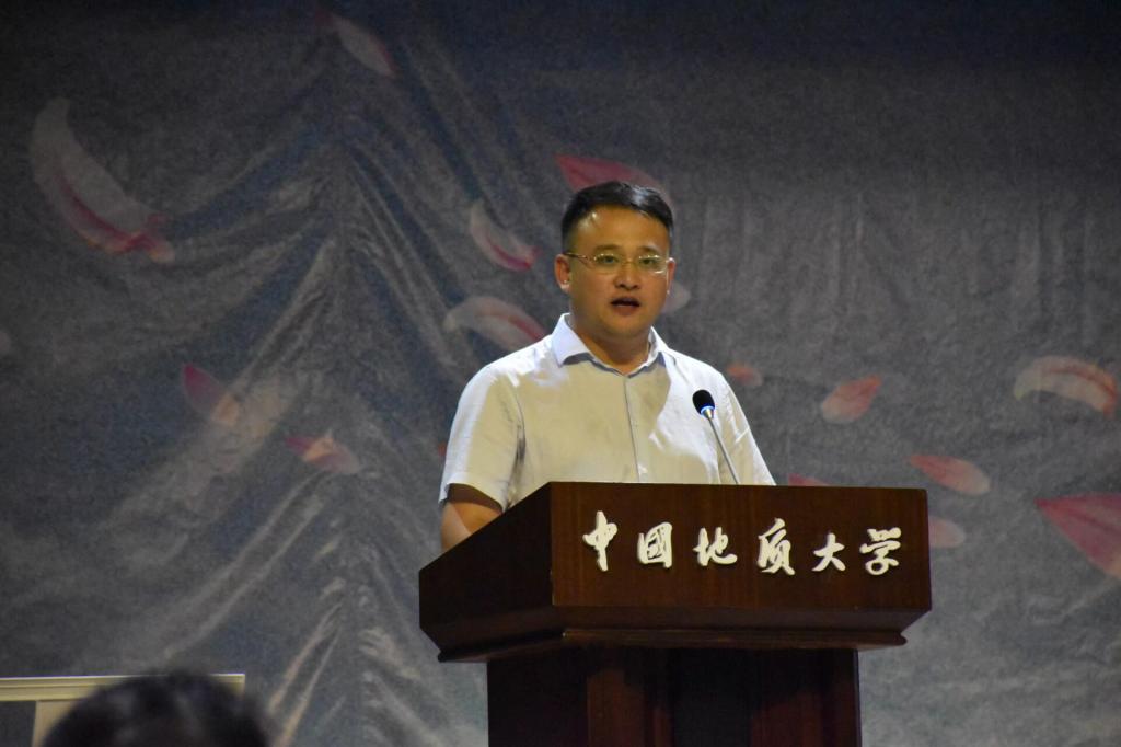 国际经济与贸易系主任白永亮代表教师发言,他从平台、规划、坚持三个方面展开,为新生传授自己的宝贵经验。