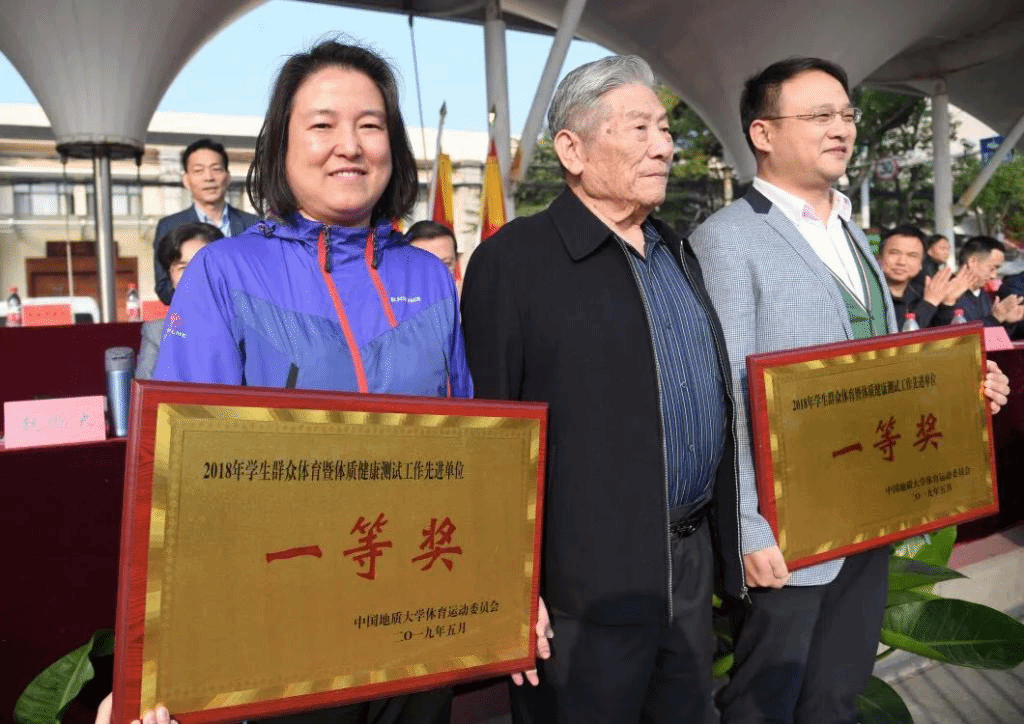 2019年11月8日,在一年一度的校田径运动会开幕式上,校体育运动委员会公布2018年度学生群众体育暨体质健康测试工作先进单位名单,ky开元官网再度蝉联一等奖,赵鹏大院士亲手为ky开元官网颁发奖牌。