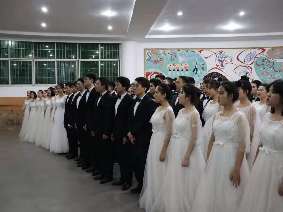 ky开元官网今年演唱的曲目为《我爱你中国》。女生身着雪白长裙,男生身着黑色西装,庄严而高雅,肃穆而柔和。合唱开始前,08S191班张桂森同学在悠扬的小提琴声与钢琴声中献上深情朗诵,表达了对祖国母亲的热爱。