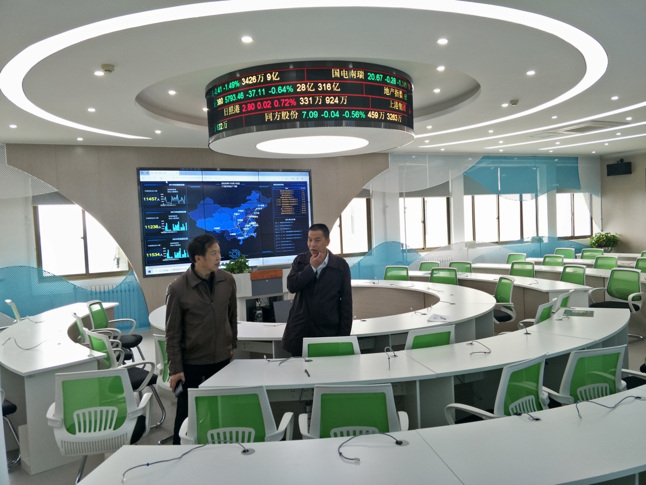 华北水利水电大学管理与经济学院院长李纲教授带领ky开元官网一行实地参观并讲解了人工智能测量实验室、商业行为测量实验室、新商科VR仿真沙盘综合实验室、智慧物流生产性仿真实验室、财务共享中心、国际商务与金融实验室等实验室的具体内容。