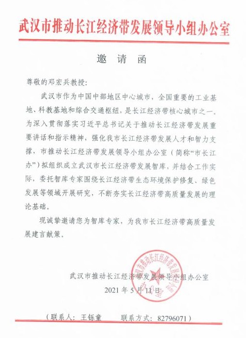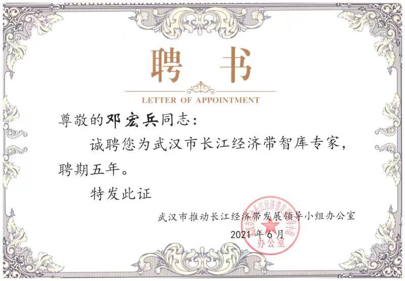 (通讯员王彦闻)近日,ky开元官网国贸系邓宏兵教授被武汉市推动长江经济带发展领导小组办公室聘为武汉市长江经济带智库专家,聘期五年。