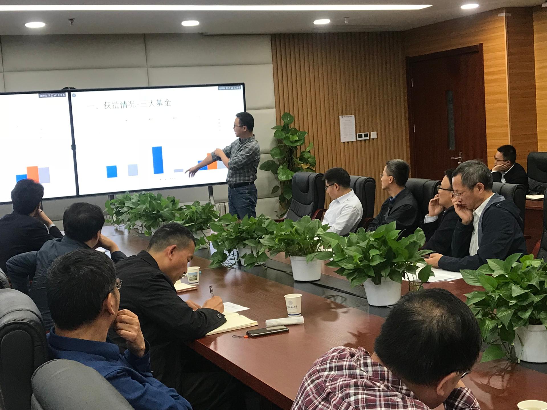 杨树旺院长首先介绍了学院基本情况。程胜副院长介绍了学院目前科研项目申报情况,总结了去年自科社科基金项目申报工作及取得的成果,并指出了相关工作的不足。科发院领导随后介绍了学校科研相关政策,指出学校对于科研工作极端重视,鼓励经管学院大力推进科研项目申报工作,及时弥补短板和不足,取得更好的成绩。最后杨昌锐书记做了总结讲话。