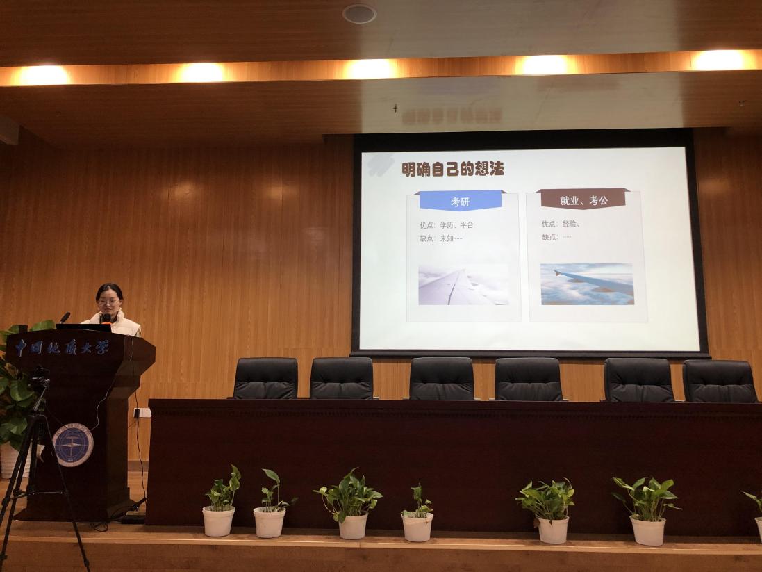 管科系系主任朱镇老师首先开场为大家简要解答了关于考研和保研方面的一些问题,并建议学生根据自身成绩水平有的放矢地选择报考院校和专业,同时针对计划毕业后直接就业的同学强调应当脚踏实地地学习大三的每一门专业课。