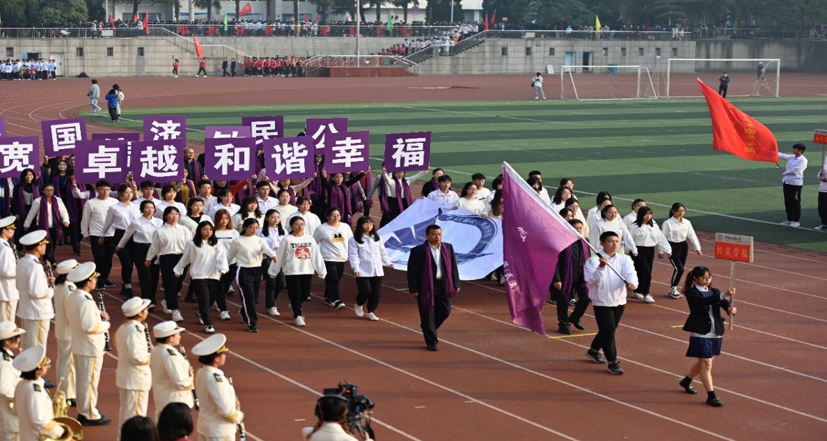 在10月29日的开幕式上,在书记和院长的带领下,由ky开元官网师生组成的ky开元集团官网方阵步伐稳健,昂首阔步走过主席台,亮相全校师生。“卓越、和谐、幸福”的院风,凝聚人心;“宽信敏公,经国济民,地大精鹰,长空万里”的口号,铿锵有力,响彻南望山,展现了经管人的家国情怀。