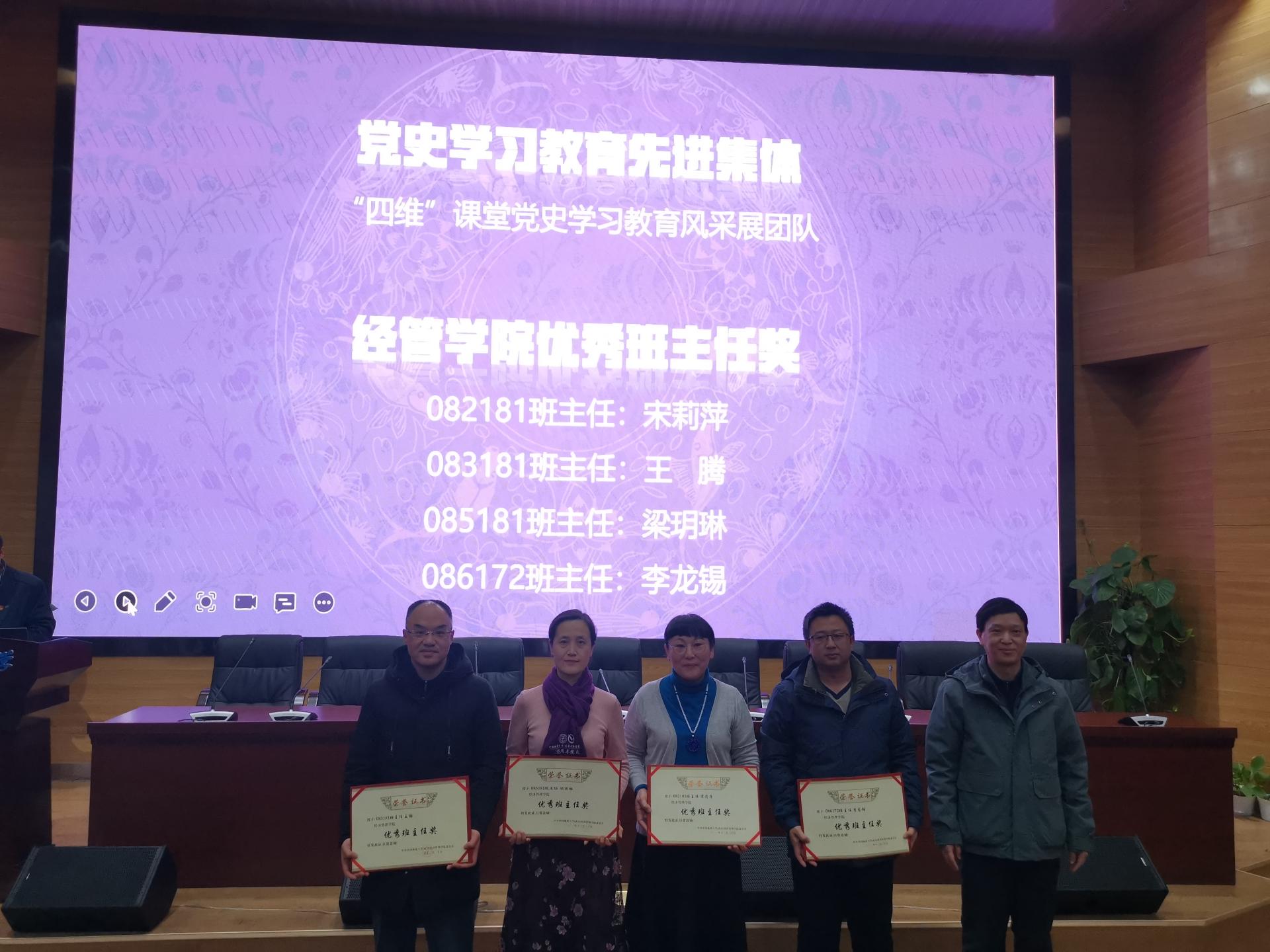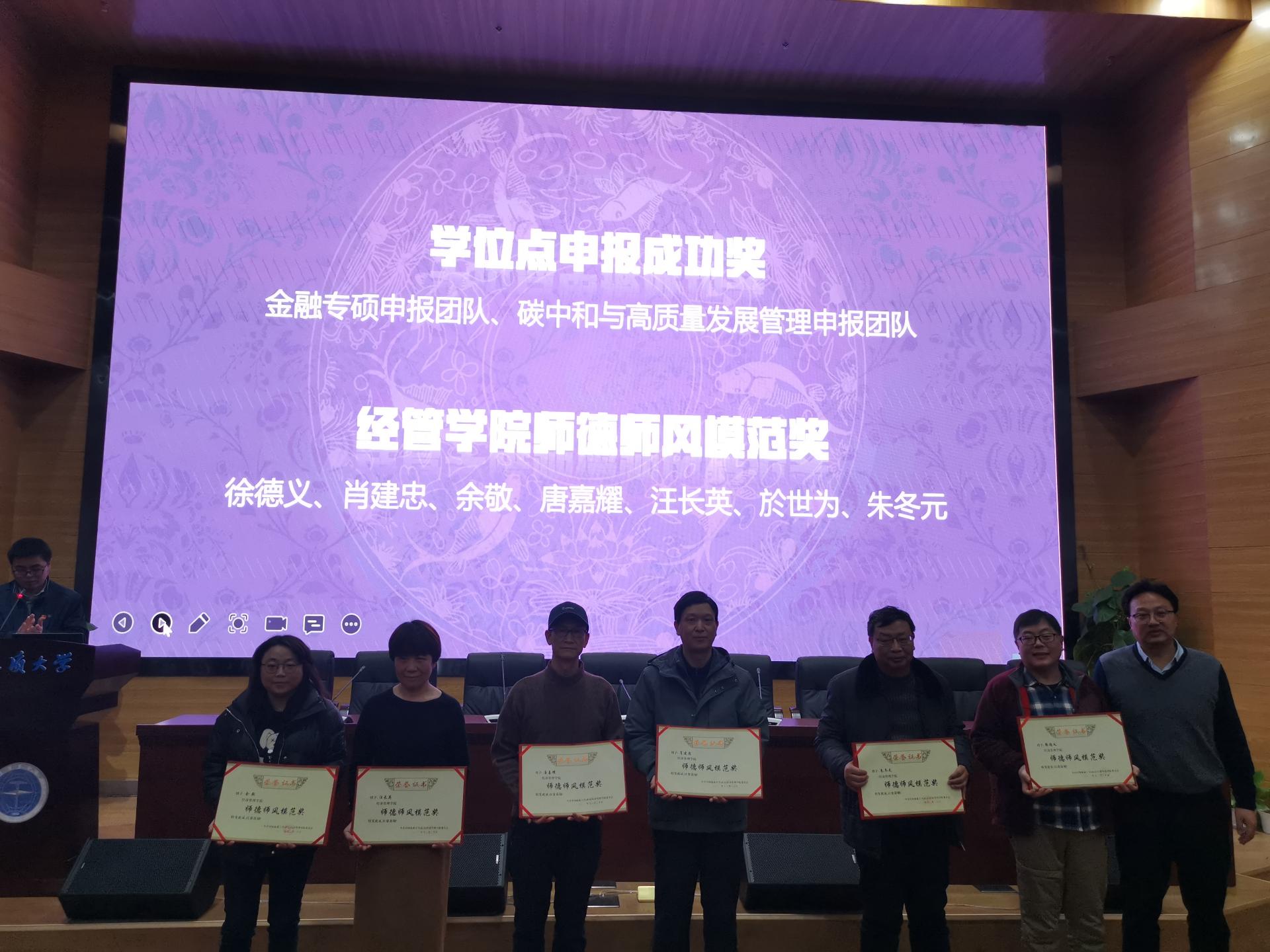 学院领导对突出贡献奖、学位点申报成功奖、ky开元集团官网师德师风模范奖、党史学习教育先进集体、经管学院优秀班主任奖、体育运动集体奖、学院工会积极分子等集体和优秀教师个人予以了表彰。
