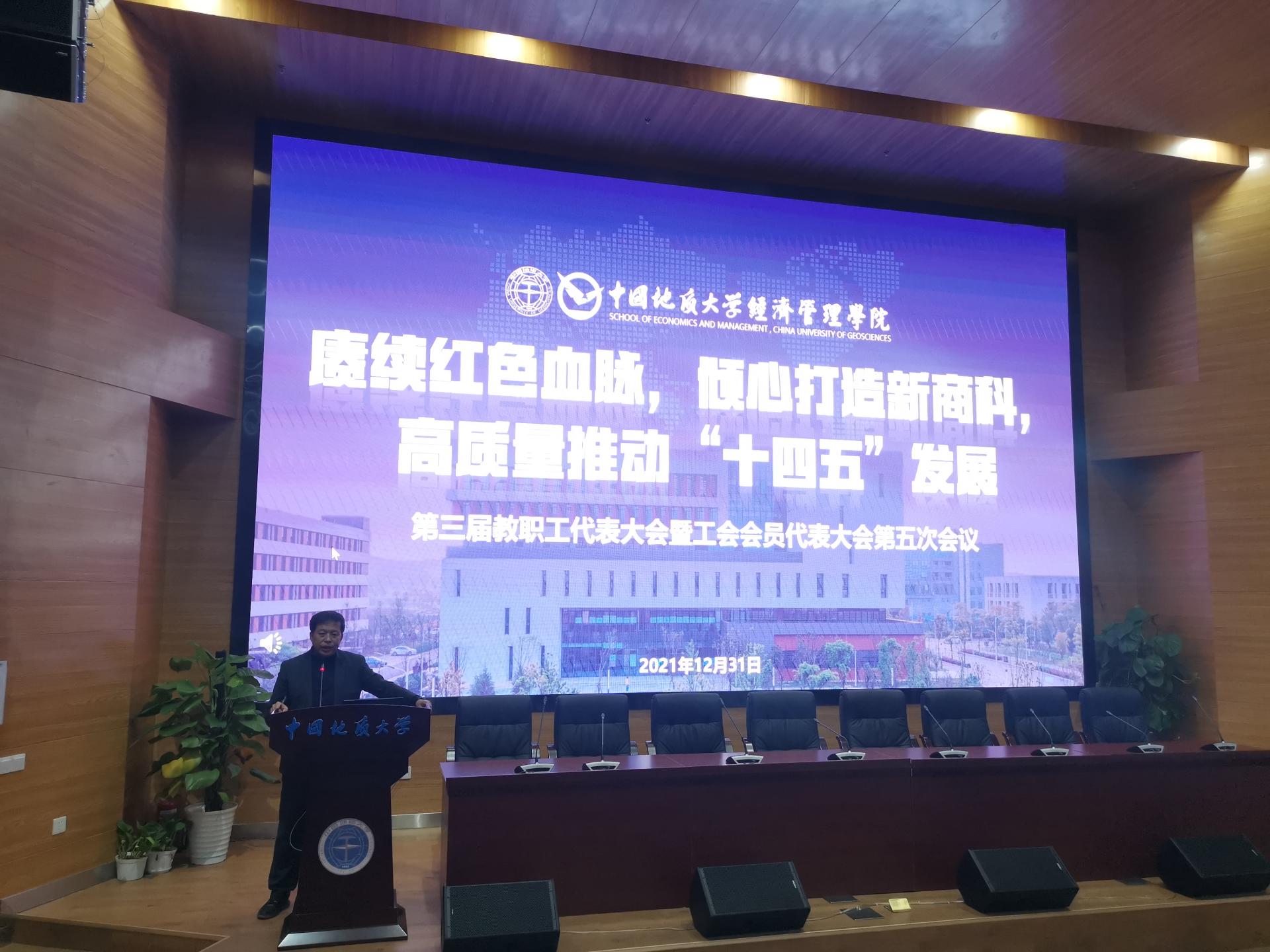学院党委书记杨昌锐同志发表了热情洋溢的开幕词。他指出,在2021年,经管学院全体教职工响应“把党的历史学习好、总结好,把党的成功经验传承好、发扬好”的号召,以“学党史,悟思想,办实事,开新局”为行动指南,赓续红色血脉,传承红色精神,发扬优良传统,在回望总结学院过往艰苦奋斗历程的基础上,立足当下国家和社会发展新需求和学校地学特色,把握学院未来建设与发展开拓奋进方向,绘就了学院“十四五”发展蓝图,确立了新时代特色新商科的发展目标,开启了学院继往开来建设发展的新征程。他希望全体与会代表按照大会议定日程,积极参加大会的各项活动,充分履行民主管理和民主监督职能,解放思想,求真务实,把本次大会开成一个团结鼓劲、振奋精神的大会!