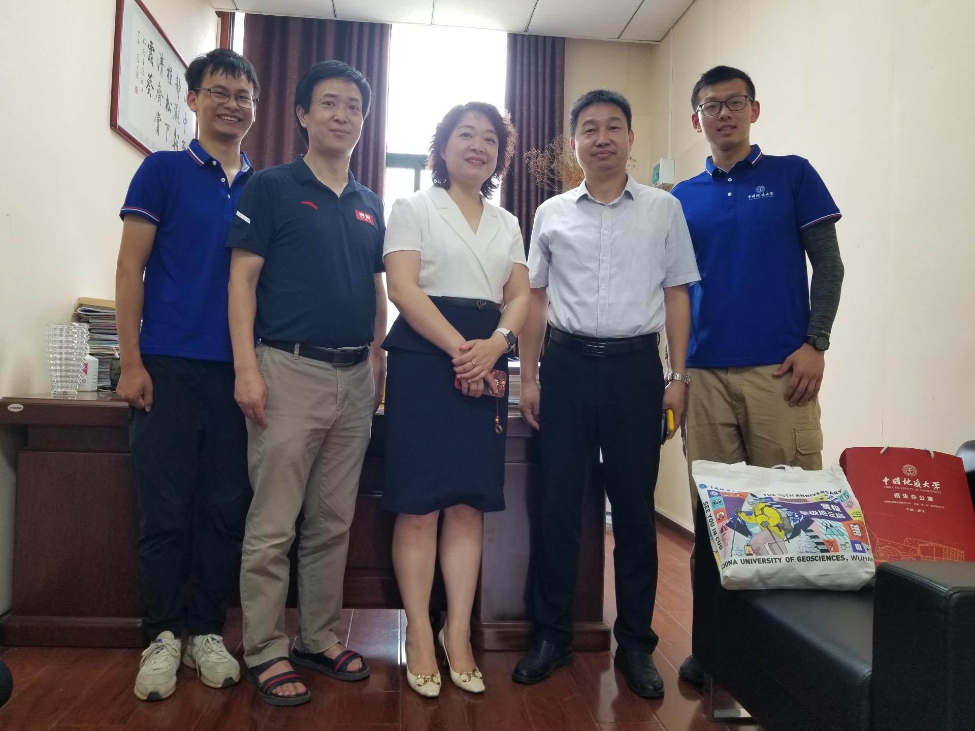 副院⻓肖建忠(左⼆)与⻩陂⼀中校⻓李曼丽(左三)合影