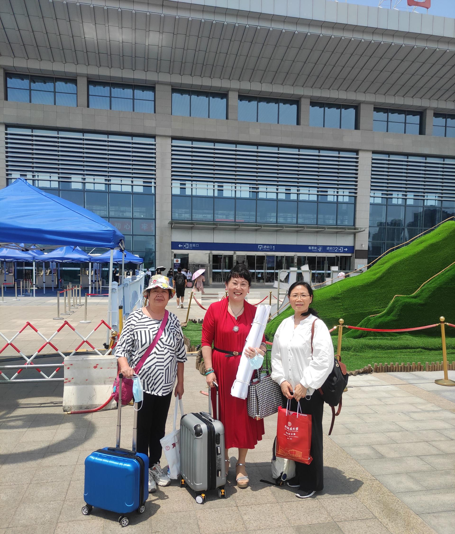 出发前,学院部分教师举⾏简短出征仪式,领取招⽣物资、拍照合影。
