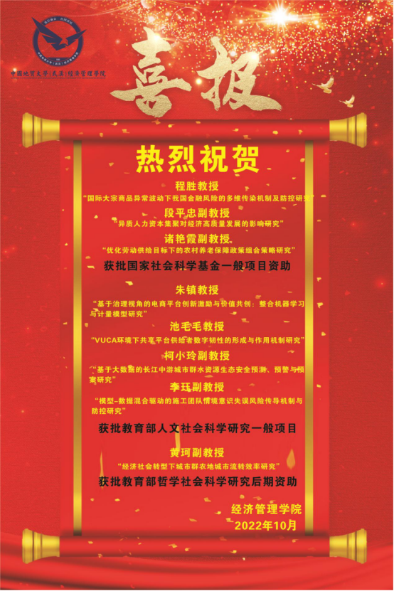 日前,全国哲学社会科学工作办公室发布了“2022年国家社会科学基金年度项目和青年项目立项结果公布”,学校6项获批国家社会科学基金一般项目资助,ky开元官网3个项目获批资助。