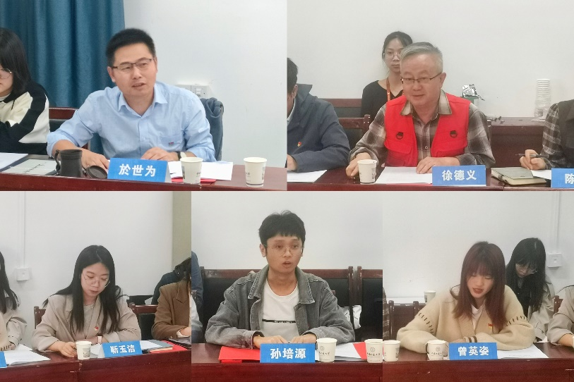 与会领导就如何学深悟透党的二十大精神,扎实推进研究生党建工作给予指导。王甫表示,设立导师团队研究生党支部,增进了教师与学生在科研和党建方面的双向联系,实现了研究生党员培养和导师党员素质的双提高。广大研究生党员要认真学原文悟原理,牢记重要论述,对比新旧表述,深度解读报告,紧密结合实际,在学习科研中学深悟透党的二十大精神,在学习党的二十大精神中找准研究方向,为全面建设社会主义现代化国家而不懈奋斗。何建新围绕“学院党建谋篇布局、示范引领,特色发展”三个问题,认为党和国家始终坚持全面从严治党,坚持把基层党组织建设成能够实现党的有效领导的坚强堡垒,并提出通过结合平台、培育样板、实现成效等方式,全面规划学院基层党建布局,并结合学院特点,以党建科研双融双促,打造党建品牌项目。
