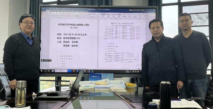 (通讯员:向雅芳 焦弘睿)11月24日上午,根据《ky开元集团官网基层教学组织建设实施意见》和经管学院党字【2022】10号文件精神,区域经济学科教融合创新育人团队第一次研讨活动在经管楼316会议室成功举行。学院党委书记杨昌锐亲临指导,团队成员邓宏兵、白永亮、洪水峰、李金滟老师及学生代表共九人参加会议。