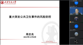 11月8日晚上七点西安交通大学周忠良教授以“重大突发公共卫生事件的风险防控”为题为我校师生开展了线上学术报告。周教授首先基于风险管理理论和整体性治理理论构建重大突发公共卫生事件的风险评估指标体系和风险控制机制;其次,基于多Agent的建模方法,与复杂社会网络中的无标度网络模型相结合,构建新冠肺炎疫情传播仿真模型,探究目前我国采用的主要防控措施和多种防控措施组合的效果;最后,以心理契约理论为切入点,探讨如何从政府层面提升公众在公共危机事件下的政策认同,从而推动疫情防控和危机管理。该讲座吸引了60余名师生在线学习,在提问环节,我校师生就疫苗的接种等问题进行了深入的交流,周教授对提出的问题给出了详细的分析和解答。
