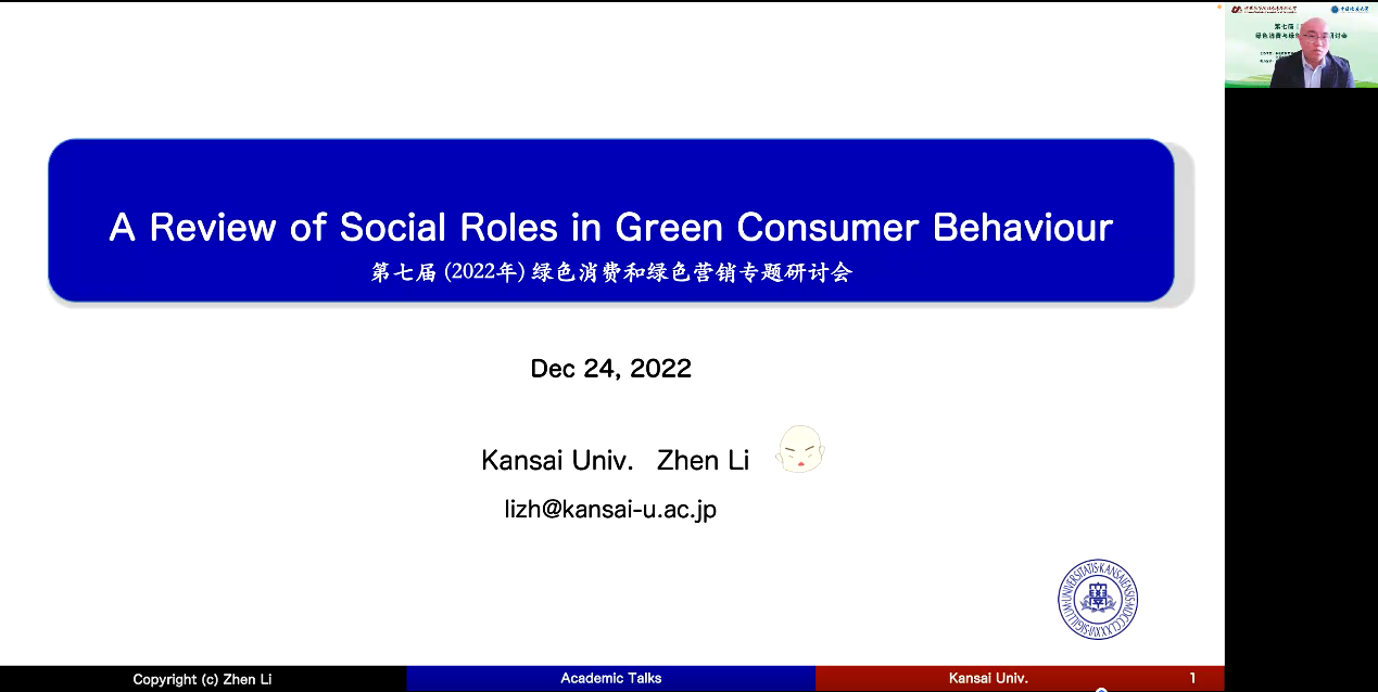 12月24日上午,以“绿色消费与绿色营销”为主题的报告中,各位专家带来了丰富的学术盛宴。江苏大学管理学院杜建国教授做了题为《供需协同视角下绿色消费行为促进机制》的分享,为大家打开了绿色消费行为研究的新视角。对外经济贸易大学国际商学院孙瑾教授做了题为《营销视角下可持续性消费相关研究“碳”索》的报告,从营销视角下分析可持续消费的背景、进展和未来发展方向。华中科技大学管理学院常亚平教授做了题为《谈谈“双碳”的商业机会》的报告,从营销视角分享实现“双碳”目标的商业机会和研究可能。日本关西大学商学院李振教授和做了题为《A review of social roles in green consumer behavior》的报告,分享了社会角色在消费者绿色消费行为的作用的文献综述。