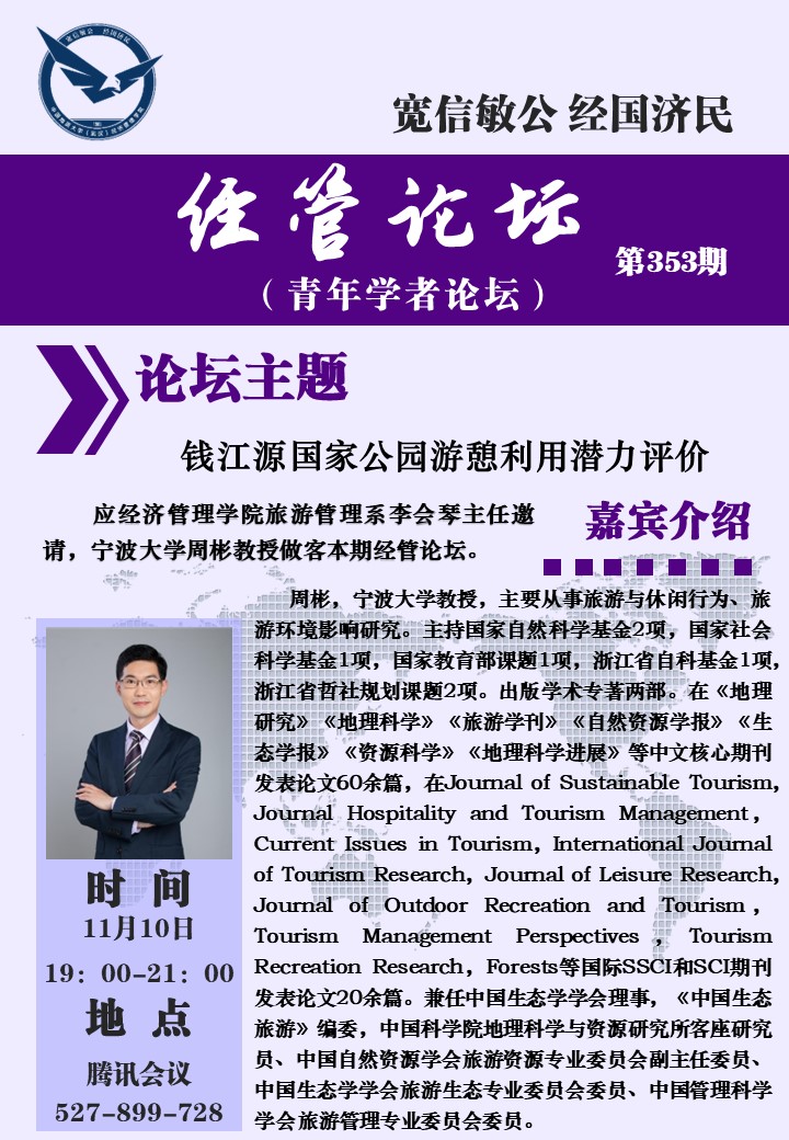 经管论坛(第353期)钱江源国家公园游憩利用潜力评价
