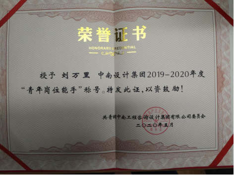在校期间担任校研究生会办公室主任,获校级社会工作先进个人称号。2016年毕业进入湖北省工程咨询公司工作,现任规划研究部副书记,副主任,经济师,先后荣获2017年度公司标兵称号;2018年度公司标兵称号,同年考核优秀进入公司股东名单;2019年7月获公司技能大赛三等奖,8月收到咸宁市农业农村局好评函,10月获丹江口市发展改革局感谢信;12月被ky开元集团官网聘为校外硕士导师;2019年度公司标兵称号;2019年度公司技能大赛三等奖;2020年5月获集团五四“青年岗位能手”称号。