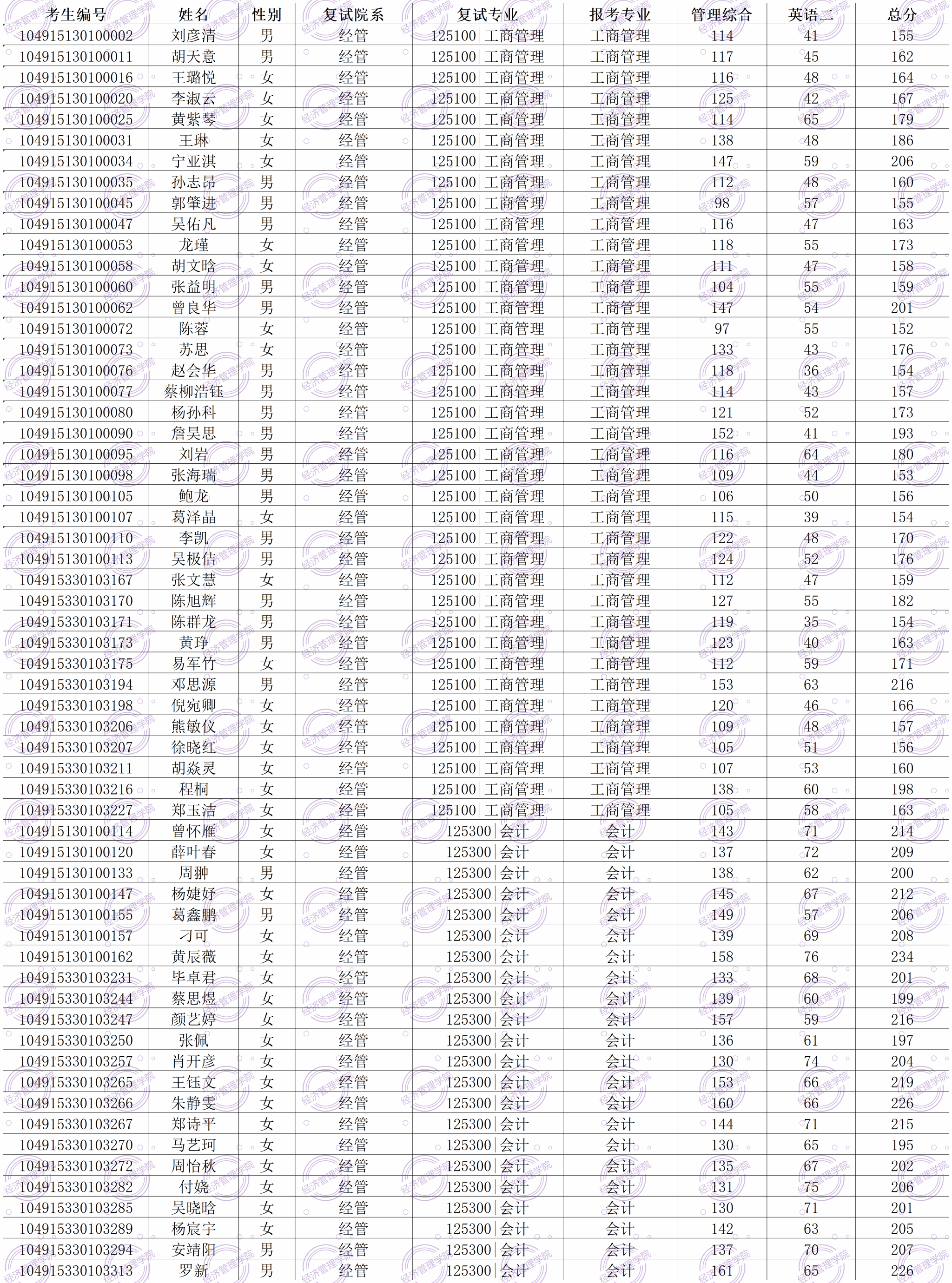 附件一:中国地质大学ky开元集团官网专硕(MBA、MPAcc)复试名单
