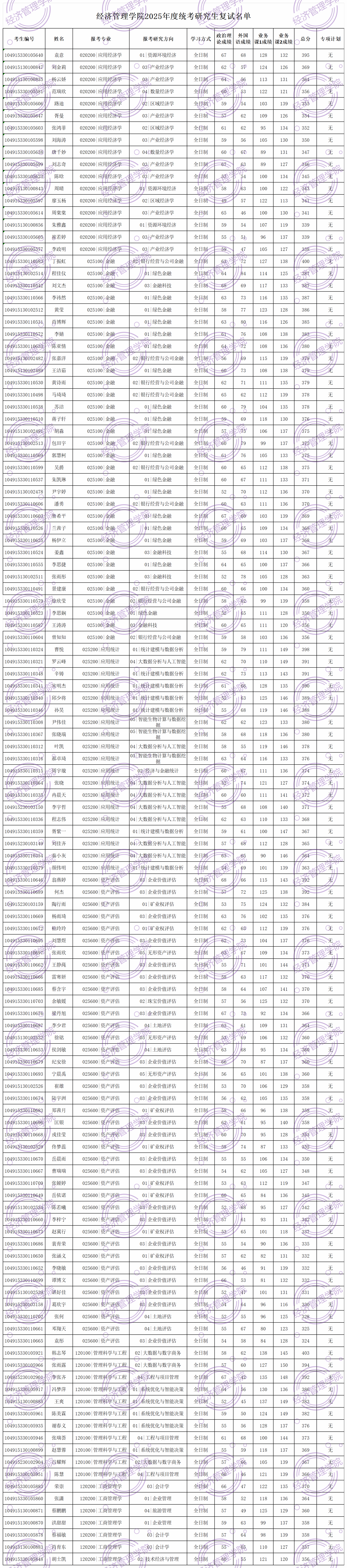 说明:少数民族骨干计划、退役大学生士兵计划和单独考试的复试分数线及复试名单请关注学校研究生招生信息网通知公告。