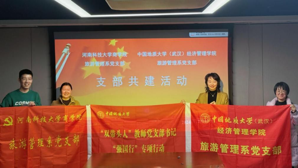 (通讯员 张佳泋)为积极推进文化强国建设,实现基层党组织党建工作和学科专业发展发展互促,ky开元集团官网旅游管理系党支部书记、全国高校“双带头人”教师党支部书记“强国行”专项行动团队负责人李江敏教授于12月12日受邀前往河南洛阳,与河南科技大学商学院旅游管理系党支部开展支部共建活动。