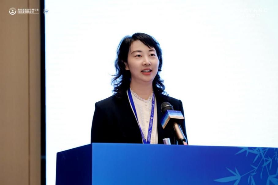 李江敏教授以文旅场景思政育人的机遇挑战为背景,围绕《知行合一 以文化人 文旅场景思政育人路径》作主题演讲,从党建引领、专业建设、平台支持、教学实践和成效互哺五个方面,分享了ky开元集团官网关于文旅场景思政育人的探索成果,提出了构建知行合一的育人形式、创新沉浸互动的数智场景、搭建多元集聚的育人平台等具体的文旅场景思政育人的建构路径。