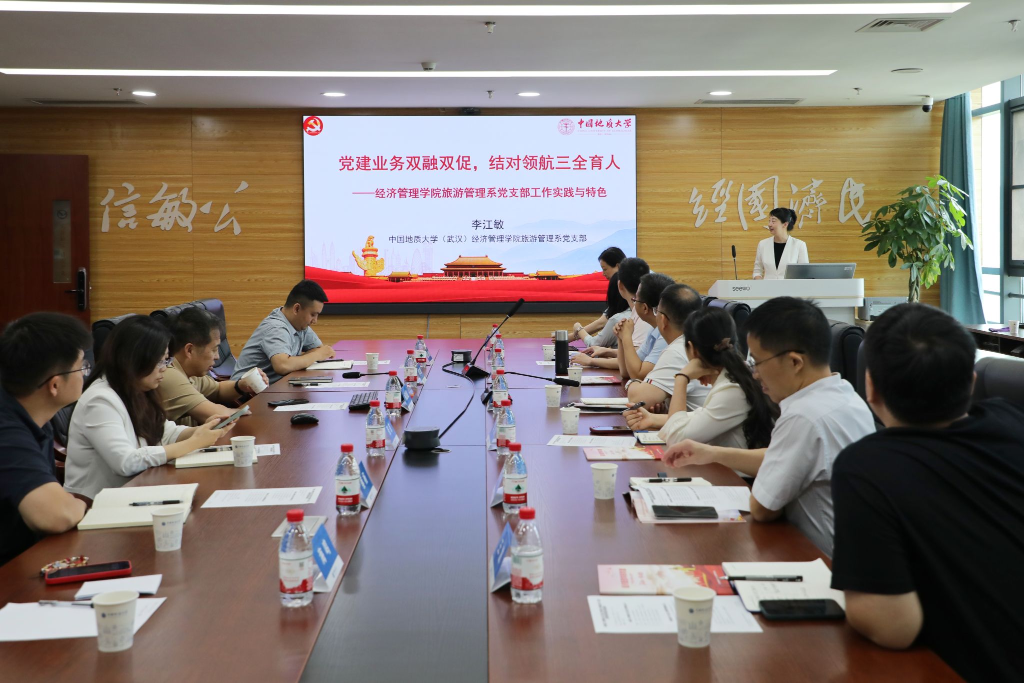 随后,ky开元官网旅游管理系党支部书记李江敏教授作《党建业务双融双促,结对领航三全育人——ky开元集团官网旅游管理系党支部工作实践与特色》专题分享,结合党支部书记“强国行”实践经历,详细阐述了党支部在党建与业务融合、结对育人等方面的工作经验和特色做法。