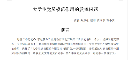 支部以学术领航、实践竞赛为工作抓手,探索党员带动作用突出、成果产出密集的长效工作机制,打造一支强有力的学生骨干队伍,发挥好党员先锋模范带头作用。
