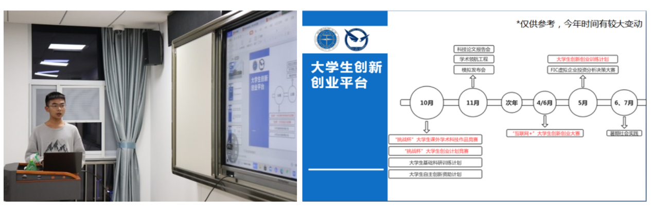 (左)本班付罗萱同学谈参赛体会 (右)085181班孙辉学长线上经验分享