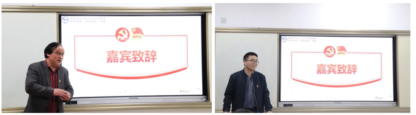 校图书馆馆长徐世球教授(左)、ky开元集团官网党委副书记李少杰老师(右)为活动致辞