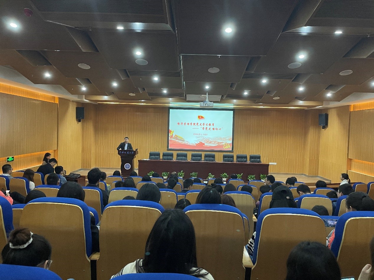 (通讯员:倪兴华)为深入贯彻落实党中央要求,迎接中国共产党成立一百周年,4月16日上午,ky开元集团官网管理科学与工程系师生党支部在未来城校区经管楼一楼报告厅,组织开展“学党史、悟初心”党史学习教育活动。学院党委书记杨昌锐,副院长王广民,老党员帅传敏教授,以及管科系师生党支部100余名师生参加。我校马克思主义学院党史讲课团成员张牛美博士应邀作专题报告。管理科学与工程系教职工党支部书记孙涵主持报告会。