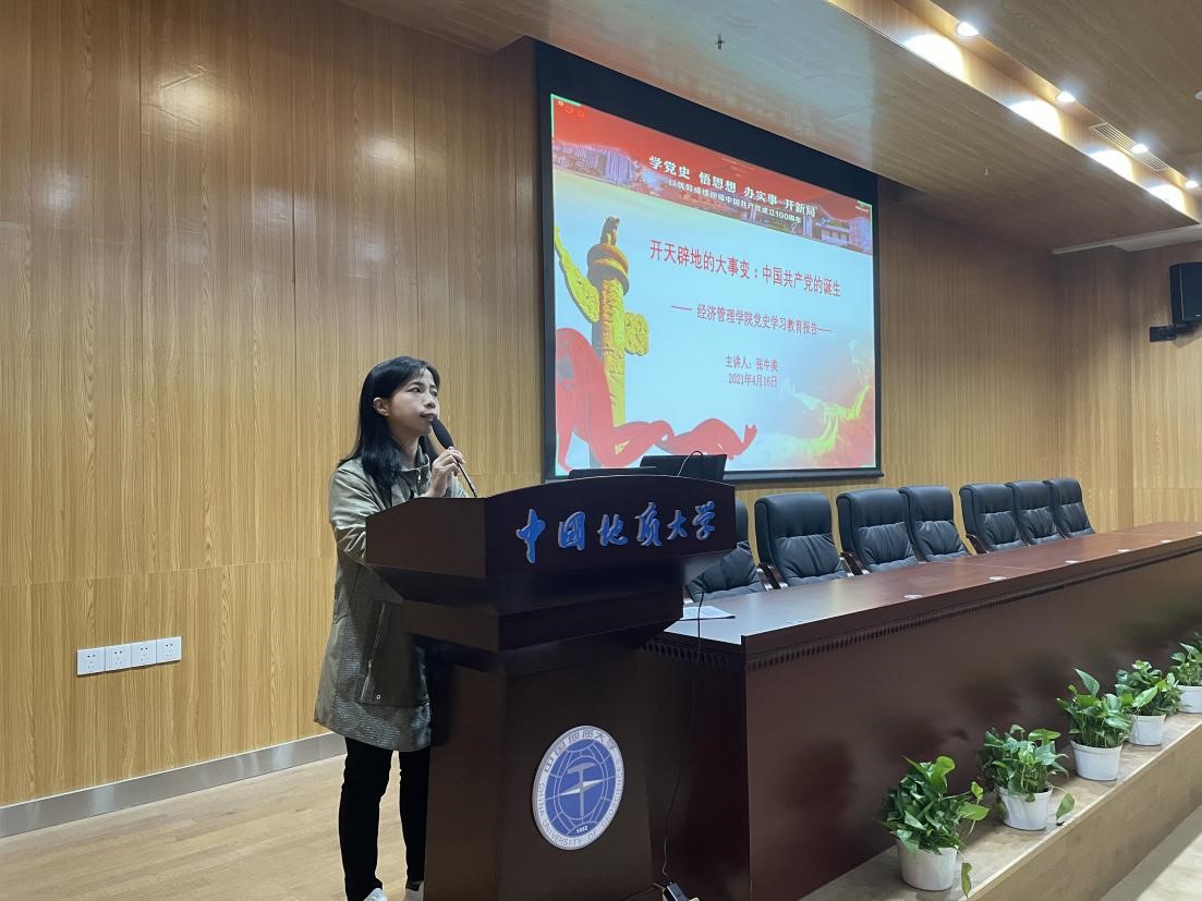 张牛美老师以《开天辟地的大事件:中国共产党的诞生》为题,围绕中国共产党的诞生历史,从“历史的选择——中国共产党的诞生历史脉络”“好事多磨——中国共产党诞生的具体过程”“开天辟地——中国共产党诞生的特点与意义”三个方面展开。报告中,她从近代中国社会的基本国情引入,讲述了中国共产党成立之前国内仁人志士的努力与求索,强调了中国共产党诞生的必然性。随后,她以中国共产党第一次全国代表大会为切入点,回顾了中国共产党诞生的艰辛历程。最后,从科学理论和革命方法两个层面剖析了中国共产党的特点,阐明中国共产党成立所具有的开天辟地的重要历史意义。