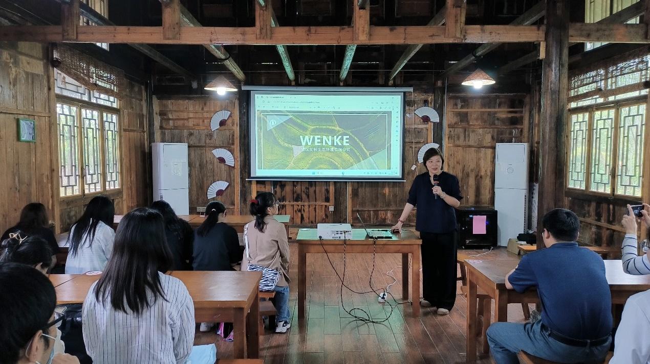 全国特级导游,师资中心经理谷音,向同学们介绍了武汉文科生态环境有限公司、武汉学知悟达旅行社有限公司及光谷有田劳动教育基地,也向同学们介绍了研学旅游的发展历程和前景。她用从“萌新”成长为“特级导游”的自身经历,讲述着对导游行业的执着和热爱,同时也言传身教,鼓励同学们一定要找准人生坐标,学好专业知识,成就最好的自己。