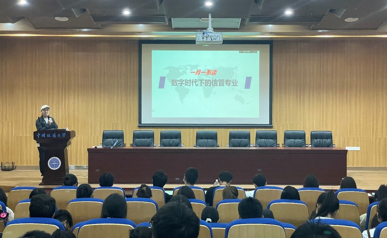 首先江毅老师给出了信息管理与信息系统的定义:面向数字交互场景,利用信息技术搭建最高效的管理工具和实施方案,支持组织管理决策和数字化创新。他强调同学们在学习中要注重培养编程开发、数据分析、IT项目分析和实施、系统决策与建模以及数字产品设计和运营五个能力,并将本专业分为技术与管理两个侧重发展方向进行介绍。随后,江毅老师进行了拓展讲解,分别阐明了四个未来就业方向,一是研发岗、软件开发工程师;二是数据分析师、数据运营;三是IT咨询、IT实施、IT项目经理;四是互联网企业产品经理、数据运营。他指出每一个方向又都含有与其他方向不同的学习路径,例如研发岗会更侧重实践的积累,最好能有相关竞赛证书和研发经历;数据分析强调学研结合,鼓励积极参与各类科研项目与竞赛;IT有关职业则更看重知识互补,同时也要加强沟通交际能力;产品经理方向就更偏向实习经历与掌握互联网思维和逻辑。