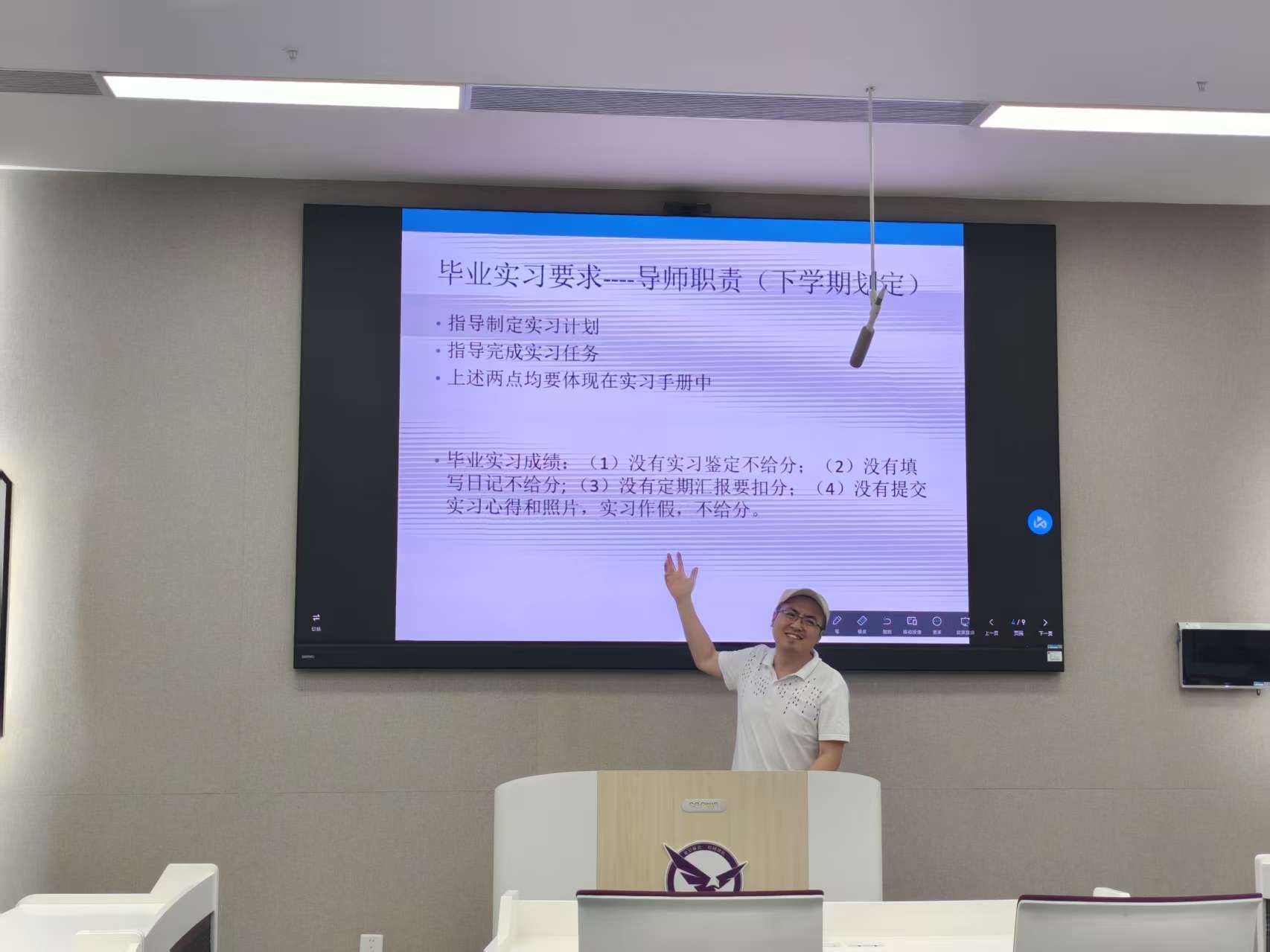 其次,江毅老师介绍信管毕业实习的要求,明确从3月份开始,连续9周的时间段,并告知实习日记、实习报告等相关材料要求,强调了实习鉴定的重要性。针对实习考核,江老师强调将采用 "导师制" 评价体系 —— 指导老师重点考察实习日志中的案例深度,明确指导老师的指责,即指导制定实习计划和指导完成实习任务。