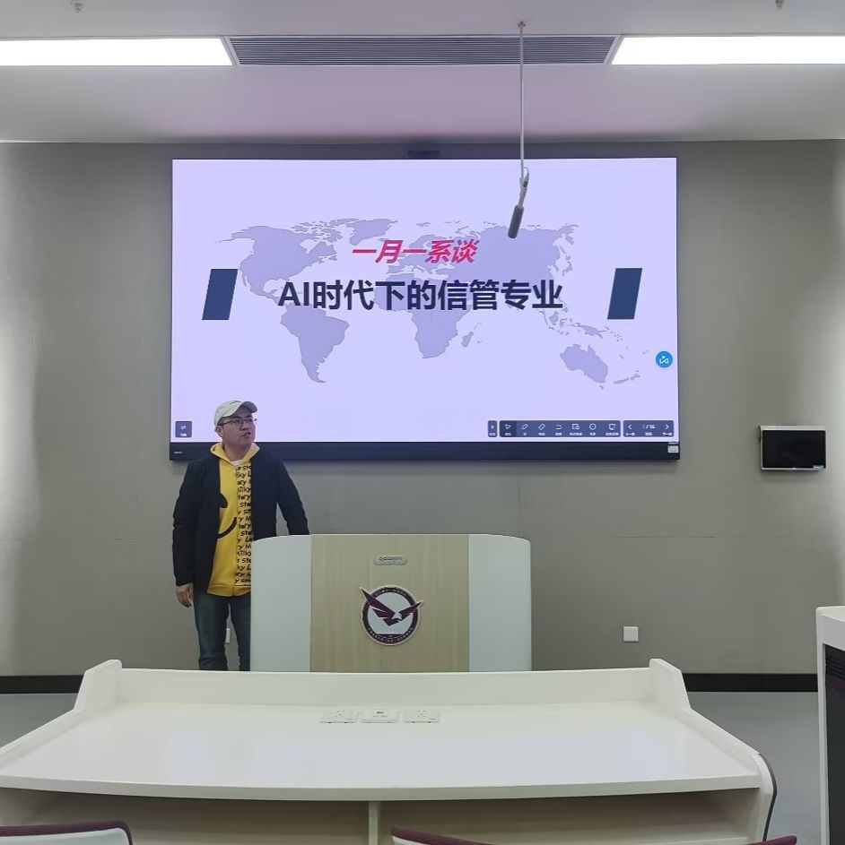 首先,江毅老师作专题报告,结合当前AI技术飞速发展的行业趋势,聚焦信管专业的四个不同发展方向,系统且深入地解读了新时代下信管学子应具备的AI素养、需掌握的AI互补知识以及AI赋能专业学习与未来职业发展的路径。在AI素养培养方面,江老师强调,信管学生需具备敏锐的AI技术感知能力、数据思维与创新意识,能够主动拥抱AI技术带来的变革;在AI互补知识体系构建上,他详细梳理了数学基础、计算机编程、数据分析工具等与AI技术紧密相关的知识模块,明确了各模块在信管专业学习中的重要性;而在AI赋能路径讲解中,江老师通过列举AI在信息系统开发、企业数据分析、供应链优化等领域的实际应用案例,让新生直观感受到AI技术与信管专业的深度融合,为他们未来的学习与职业规划提供了清晰的方向。