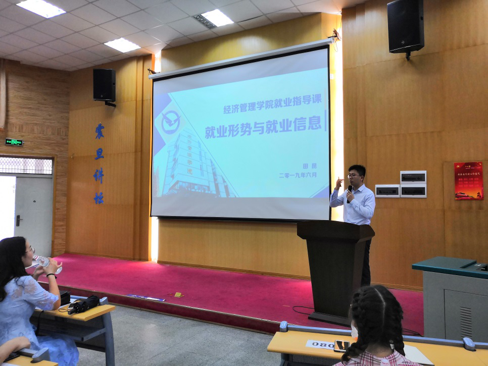 (通讯员:赵玲雪)2019年6月1日上午8:30,ky开元集团官网2016级全体学生的就业指导课第二讲在教三楼109开讲。学院16级辅导员田昆,17级辅导员徐媛,“跟谁学”高途课堂项目初中部总监、会计学05级校友曹维佳主讲本次课程,为同学们分析就业形势与政策、讲解就业信息及关键节点、分享求职经验。