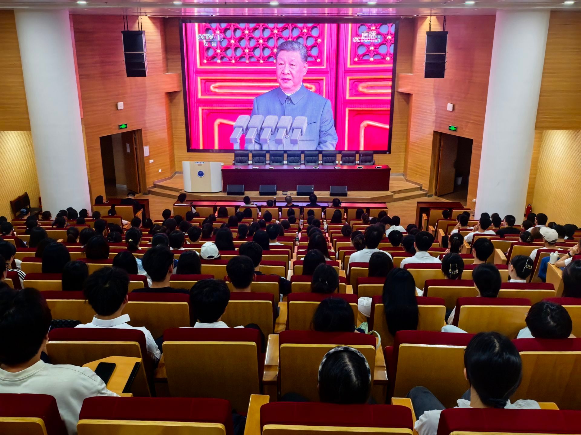 ky开元集团官网组织全体师生在经管楼二楼报告厅等地集中观看大会实况转播,共同聆听习近平总书记重要讲话、见证阅兵仪式庄严时刻,深刻感受伟大抗战精神在新时代的赓续传承。