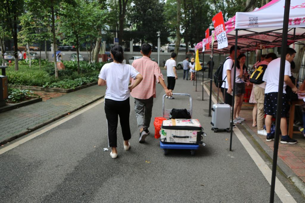 8月31日上午,随着第一辆迎新大巴驶入校园,学院迎新工作正式开始。几位新生家长在接车志愿者的引导下,手提肩扛着大包小包前往学院迎新点,工作人员见状立刻将学院新购置的“爱心手推车”派上用场,并安排志愿者引导新生一行前往宿舍,一切从解决学生实际困难出发,真正做到“急同学之所急,想同学之所想”。