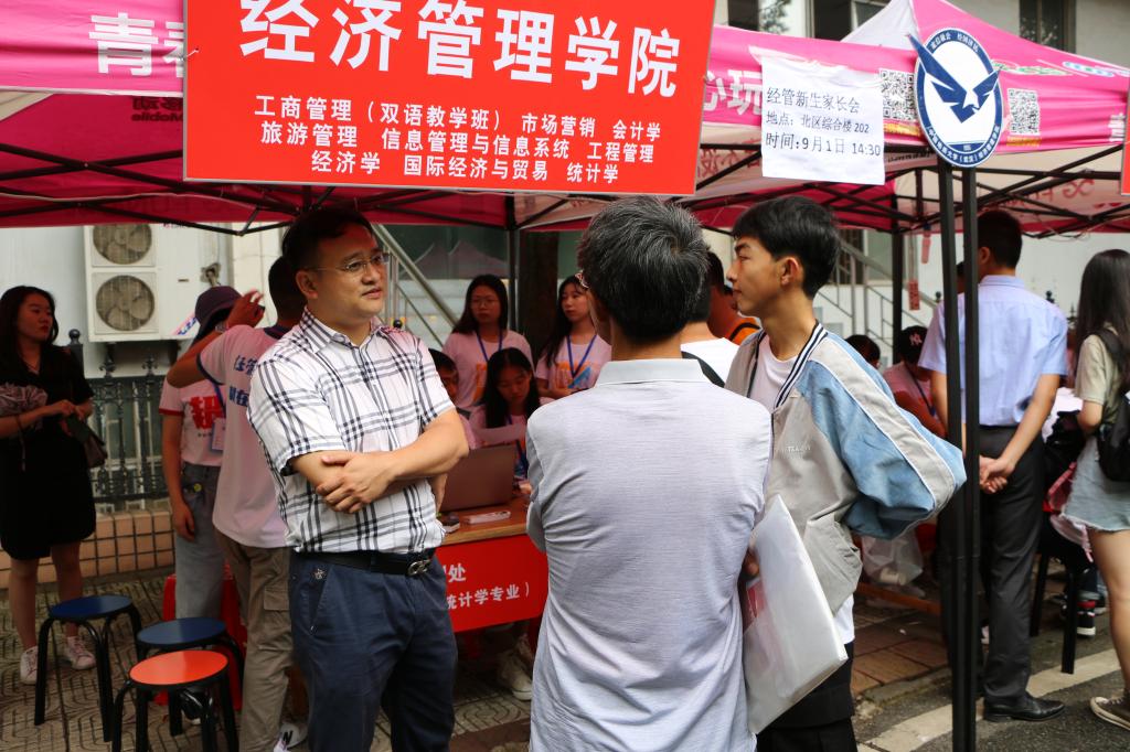 在学校大类招生的背景下,为提升迎新效率、缩短新生排队时间,学院按本、研以及大类专业人数将迎新点分为“研究生”、“管理科学与工程类+统计学专业”和“工商管理类+经济学类”三处,并单独设置咨询点,以保证新生问题可随时得到辅导员老师的解决与反馈。