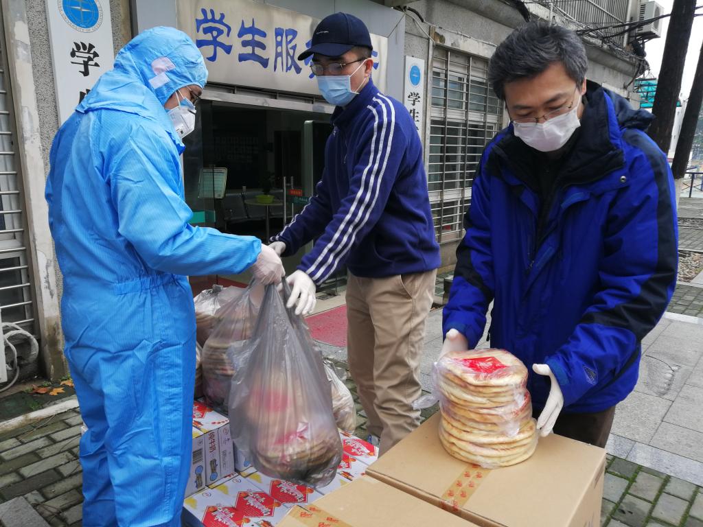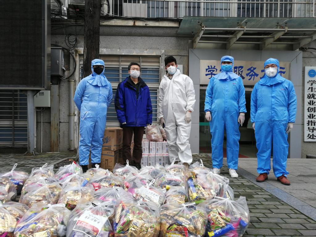 在武汉封城、物资难寻等重重困难中,我校ky开元集团官网迪力木拉提•亚力坤等4位新疆籍同学远在家乡,在老师、同学和校友们的共同努力下,为期5天内,联系到3家供货商的馕、牛奶、烤鸡腿、香肠、方便面、干果、抽纸巾等12种硬核援助物资,全部提供给了我校学生工作处,并委托学工处将物资分发给留校的同学们。26日下午,物资抵达学校,经学工处、保卫处和经管学院的老师们前期协调和有力组织下,留校学生临时党支部的同学积极配合,有序将物资分发到了每一位留校同学的手中。